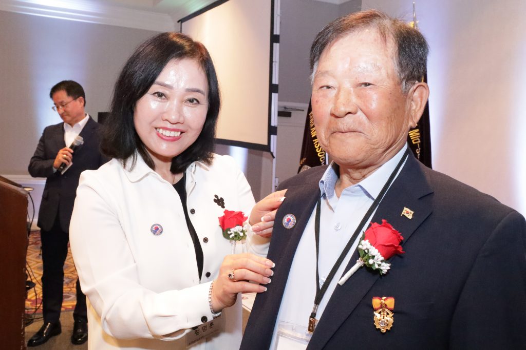 중남주연합회 회원인 배재인 회장이 고경열 이사장에게 배지를 증정했다.