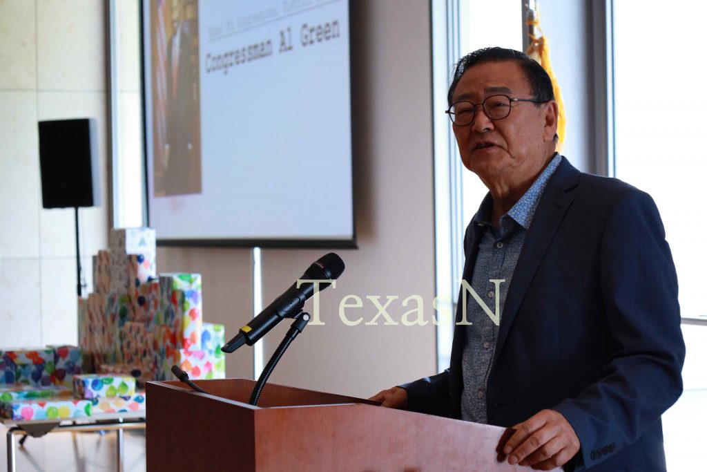 알 그린 연방하원의원휴스턴한인회 윤건치 회장From left: Yun Gun-chi, President of the Houston Korean Association; Moon-sun Kang, Chair of the Houston Korean Chamber of Commerce; U.S. Congressman Al Green; Heo Hyun-sook, Director of Han-Narae; Chi Vinh Lee, Chair of Han-Narae’s Board; Hyung-sun Kim, Chair of the Houston Chapter of the National Unification Advisory Council; Park Se-jin, Deputy Consul General of the Korean Consulate in Houston