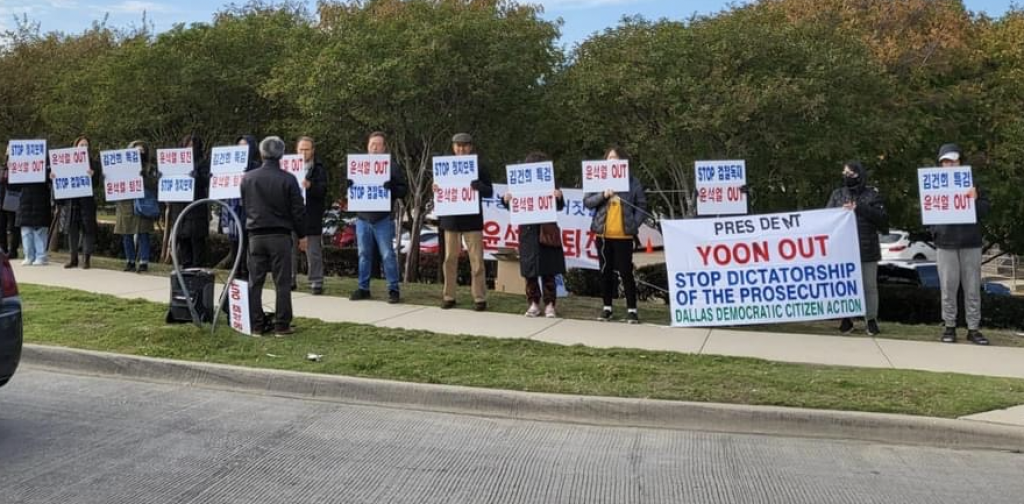 달라스에서 윤석열 대통령 퇴진 집회가 열렸다. 지난 19일(토) 달라스 민주시민행동은 캐롤튼에서 열린 거리시위에서 “헌정질서를 파괴하는 무능, 무지 검찰독재 정권을 규탄한다”고 외쳤다.