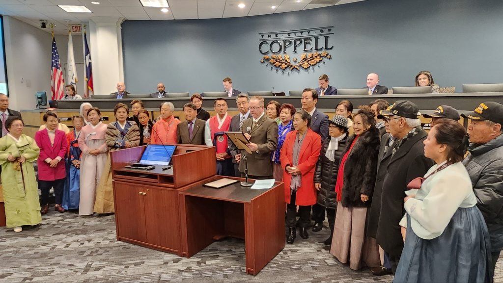 지난 9일(화) 북텍사스 지역 한인단체장 및 주달라스출장소 김명준 소장 등이 지켜보는 가운데 코펠시의회는 ‘미주한인의 날’을 공식 선포했다.