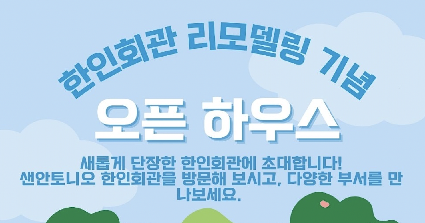 오는 29일(토) 샌안토니오 한인회관( 4405 Parkwood Dr. 78718) 오픈하우스는 오후 12시부터 3시까지다.