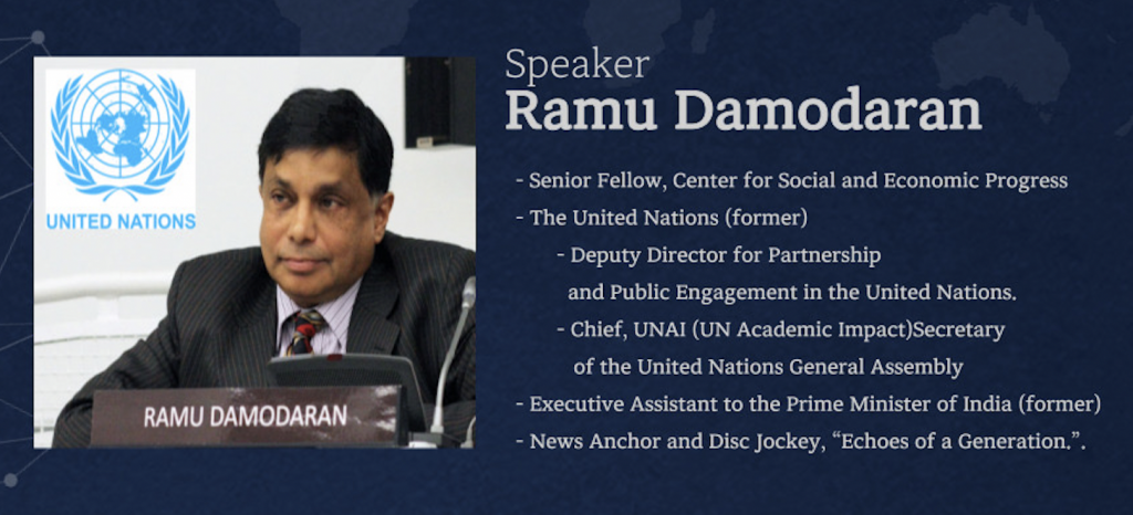 오는 4월 2일(일) 오후 6시 샌안토니오 한인회관에서 열리는 첫 세미나는 반기문 UN사무총장의 위임을 받아 지식인의 사회적 책임을 강조하는 United. Nations Academic Impact라는 유엔 산하 조직을 만들어 1200여개 대학이 지속가능할 개발을 위해 협력할 수 있도록 조력한 라무 대모대런(Ramu Damodaran)이 강사로 나선다.