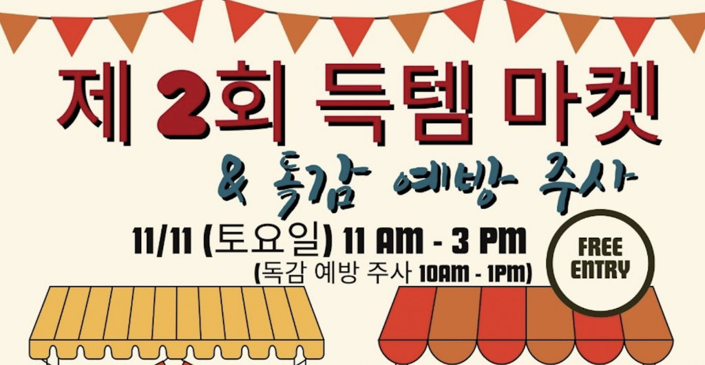오는 11일(토) 제2회 득템마켓 및 선착순 150명 무료 독감예방주사 접종
