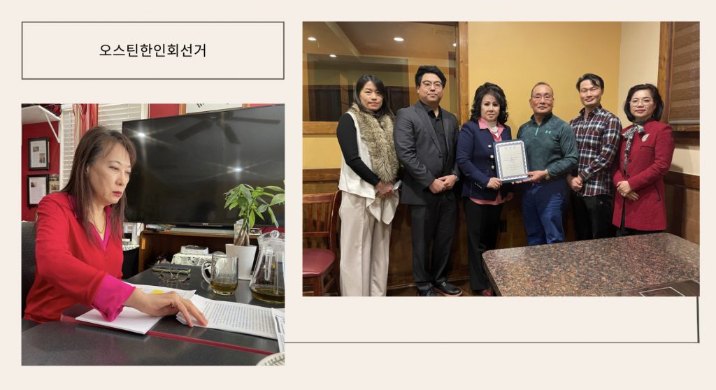오스틴한인회 선거관리위원회(위원장 박용락)가 이희경 후보에게 당선증을 교부했다. 선관위는 강수지 후보가 자격부적합이라고 판단했다. 따라서 “이희경 후보만이 단독 후보가 됐기에 무투표 당선을 확정했다”고 밝히며 당선증을 교부했다.