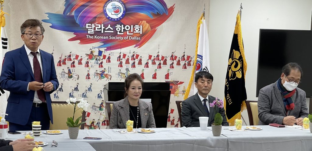 사진/ 달라스 한인상공회 김현겸 회장(사진 왼쪽)이 재외동포재단 실사팀과 한인단체장들이 함께 한 간담회에서 달라스 실사현황에 대해 설명하고 있다. (사진 왼쪽부터 김현겸회장, 유성주 달라스 한인회장, 홍성래 달라스 출장소장, 정광일 재외동포재단 사업이사)