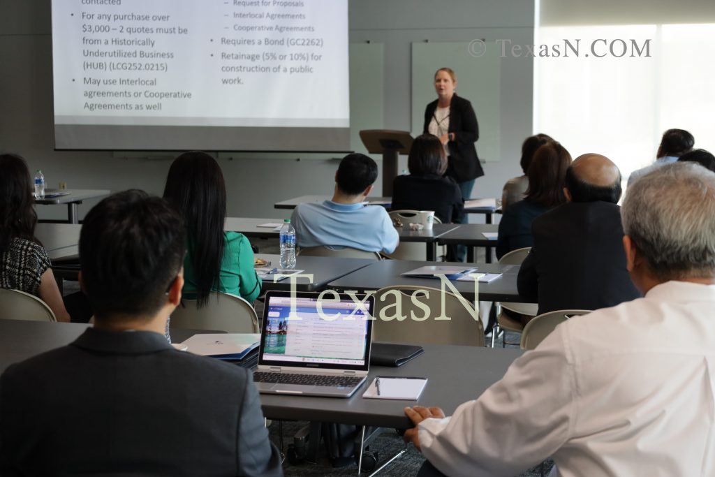 [사진 = 텍사스N] 지난 21일 달라스 한인상공회의소가 준비한 캐롤튼 시 조달물품 납품입찰 및 캐롤튼 개발사업참여방법 세미나에서 캐롤튼시 멜리사 에버렛 재정국장이 소수인종 기업 우대정책 중 하나인 주정부 HUB 기업 등록 및 입찰정보를 설명하고 있다.