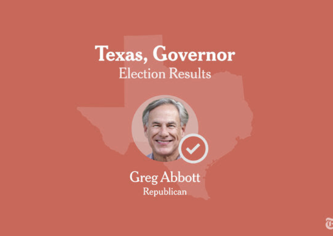 2022 중간선거에서 그레그 에봇 주지사가 당선되면서 3선에 성공했다. 에봇 주지사는 선거전 여론조사에서도 베토 오루크 후보에 앞서고 있었고 견고한 지지층을 기반으로 이변없이 3선에 당선됐다.