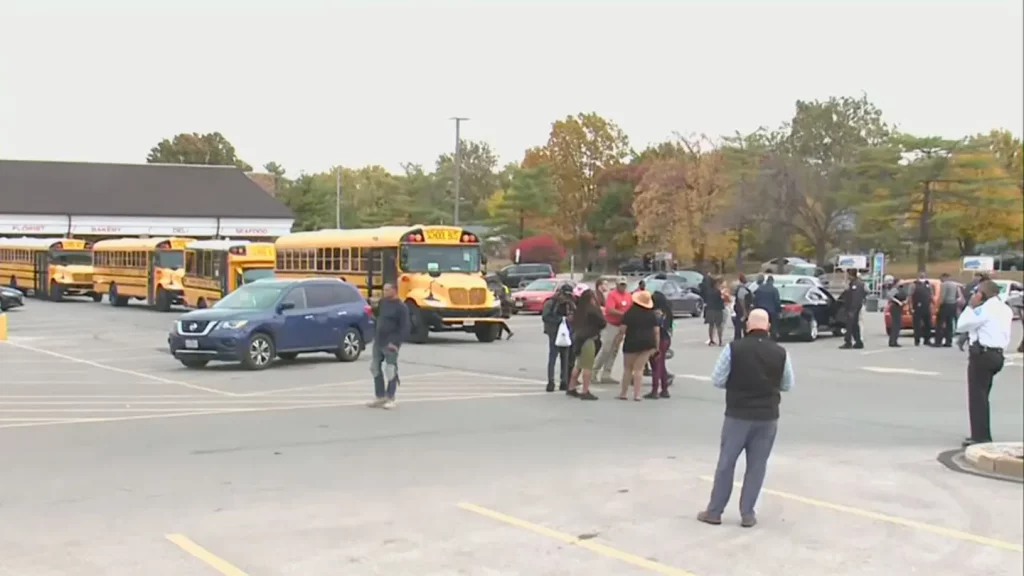사진/ 폭스뉴스(Students, teachers and parents stand in the parking lot outside Central Visual and Performing Arts high school in St. Louis after an active shooting incident. (KMOV) (KMOV)