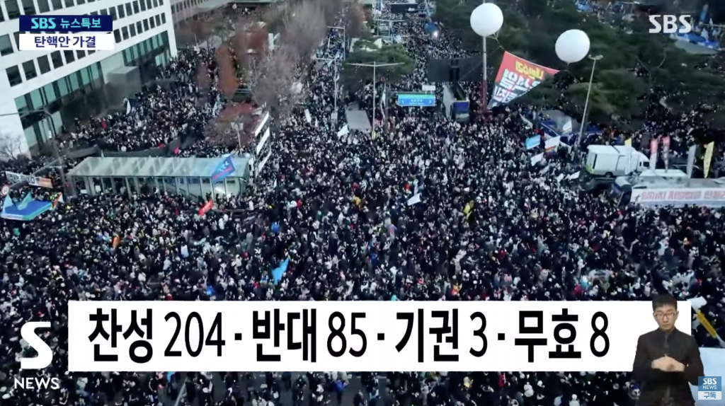 한국시간으로 14일 오후 4시부터 시작된 윤석열 대통령에대한 탄핵소추안이 국회본회의에서 가결됐다.