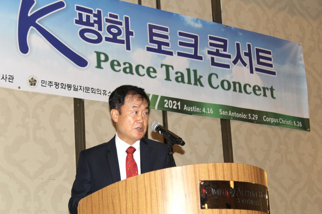 주휴스턴 총영사관의 안명수 총영사는 지난 16일(금) 오스틴에서 열린 2021 K-평화 토크콘서트에서 어스틴 지역 아시안 리더들과 차세대 등 70여명이 함께한 자리에서 분단된 나라임에도 각 분야에서 세계적 수준을 보이는 한국의 현재와 통일된 대한민국이 가져 올 잠재력을 다시금 확인시켰다.