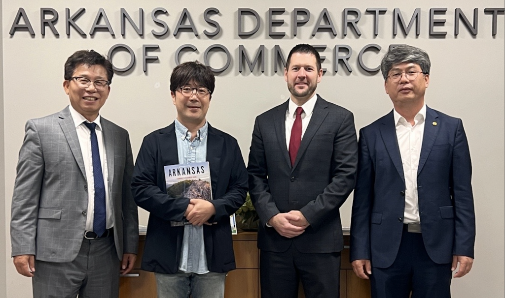사진/ 알칸사주 경제개발국을 방문한 세계한상대회 조직위원회 김현겸 기업유치위원장과 달라스 한인상공회의소 이상윤 회장, 알칸사 경제개발국 클린트 오닐 국장, 알칸사 한인상공회의소 이창헌 회장(사진왼쪽부터)