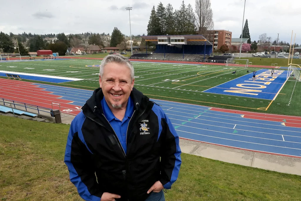 사진/텍사스 트리뷴(Joe Kennedy, a Christian former public high school football coach in Washington state who sued after being suspended from his job for refusing to stop leading prayers with players on the field after games, poses at Bremerton Memorial Stadium in Bremerton, Washington, on March 15, 2022. Credit: Meegan M. Reid/USA Today Network via REUTERS)