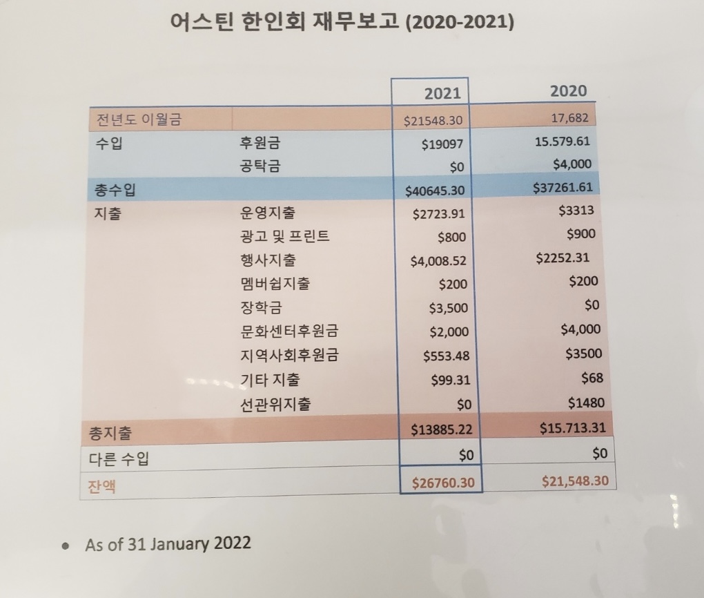 2. 어스틴 한인회 재정의 투명성 의심