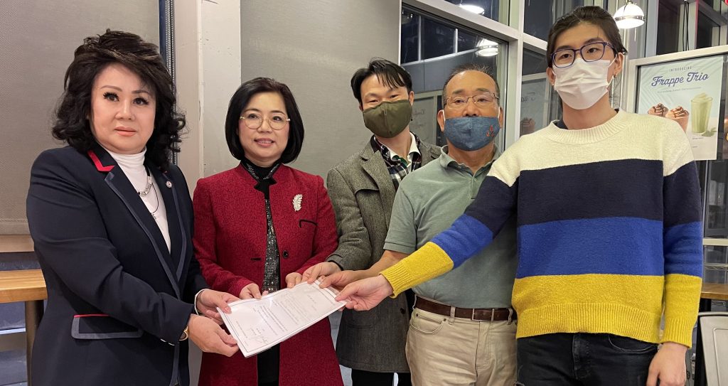 사진 / 이희경 현 오스틴 한인회장이 25대 한인회장 선거에 입후보했다. (왼쪽부터 이희경 후보, 그레이스 리 선관위원, 임재형 선관위원, 박용락 선관위원장, 이명훈 선관위원)