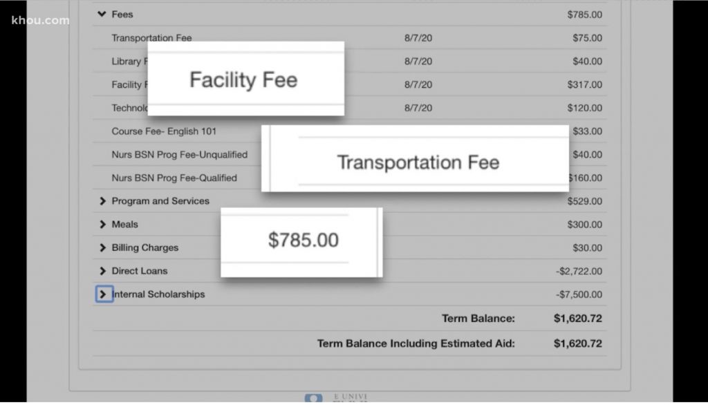 휴스턴에 거주하는 보니 그래코 씨(Bonnie Greco)의 딸은 테네시 대학교로 진학을 결정했지만 코로나19로 인해 온라인 수업만 듣게 됐다. 때문에 학교 기숙사에 무조건 들어가야 하는 기준을 지킬 이유가 없었으나 수업료 및 학교시설물 이용료, 주차비 등을 내라는 청구서를 받았다.