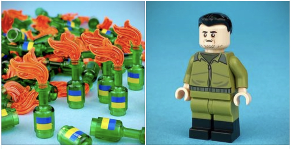 고객맞춤 레고를 제작해 판매하는 장난감회사 시티즌 브릭이 볼로디미르 젤렌스키 우크라이나 대통령의 레고 피규어를 제작, 판매했다. 시티즌 브릭은 판매 수익금 총 1만 6,540 달러를 우크라이나 전쟁 희생자들을 위한 기금으로 자선단체에 기부했다.