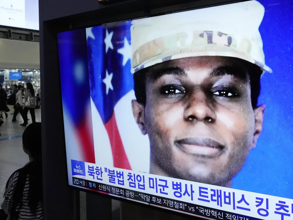 사진 / NPR (A TV screen shows a file image of U.S. soldier Travis King during a news program at the Seoul Railway Station in Seoul, South Korea, Wednesday. North Korea said Wednesday that it was expelling King, who crossed into the country through the heavily armed border between the Koreas in July. Ahn Young-joon/AP)