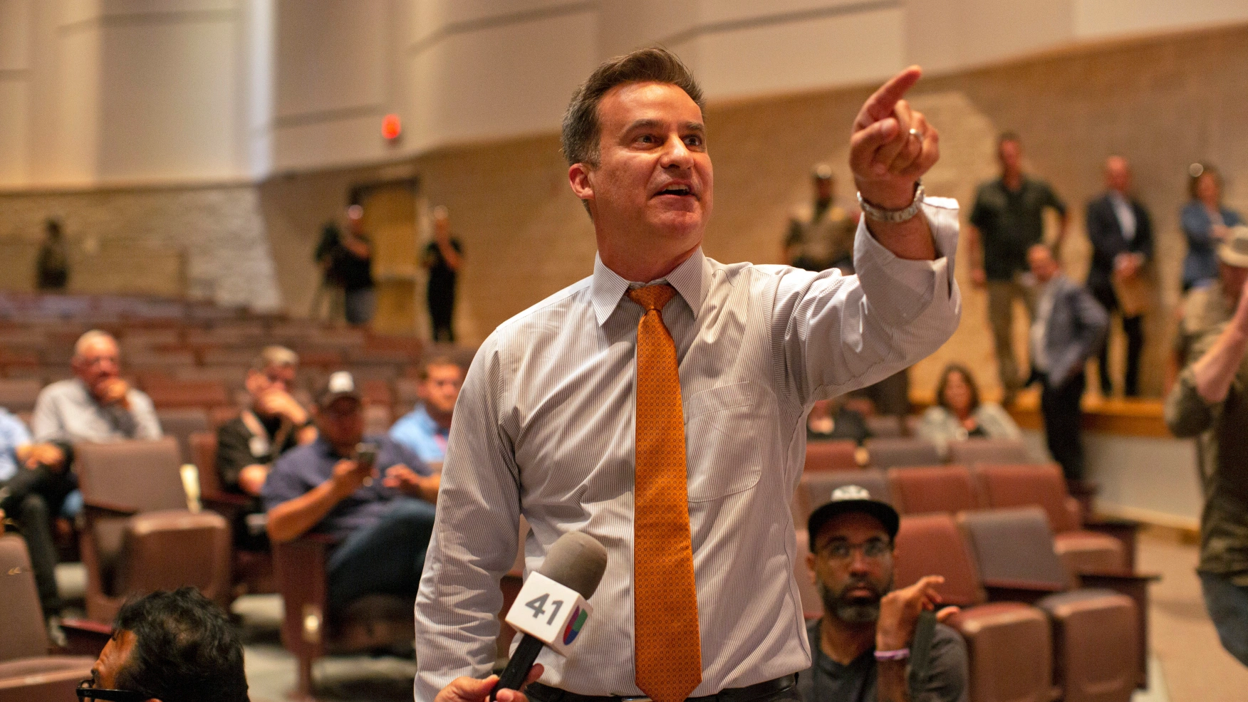 사진/ Texas state Sen. Roland Gutierrez, of District 19 which cover Uvalde, interrupts and confronts Texas Gov. Greg Abbott during a news conference, Friday, May 27, 2022, about this week’s shooting at Robb Elementary School in Uvalde, Texas. (AP Photo/Dario Lopez-Mills)