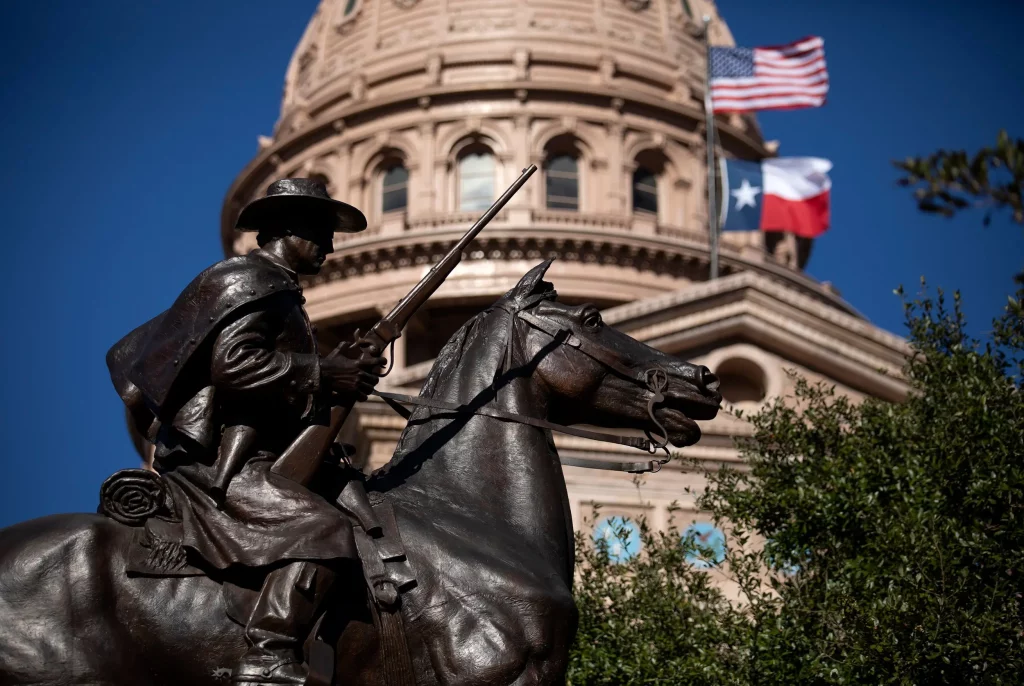사진/ 텍사스트리뷴(A monument to the 8th Texas Cavalry, a Confederate regiment also known as Terry’s Texas Rangers, is located on the south side of the state Capitol grounds. Credit: Miguel Gutierrez Jr./The Texas Tribune)
