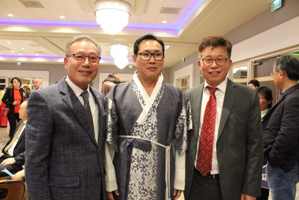 사진/ 휴스턴 한인상공회 발족식에 참석한 황병구 총회장(사진 왼쪽)이 휴스턴 한인상공회 강문선 회장과 달라스 한인상공회 김현겸 회장과 기념사진을 찍고 있다.