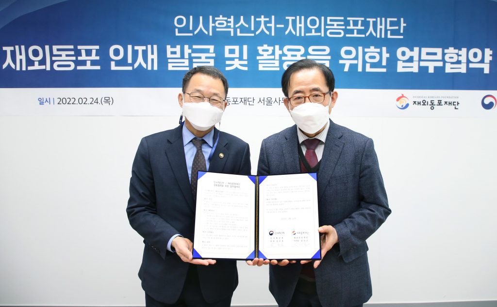 재외동포재단은 한국시간으로 24일(목) 인사혁신처(처장 김우호)와 업무협약을 맺고 해외 동포 인재 발굴 및 활용을 위한 양 기관간 전반적인 협력을 다짐했다.