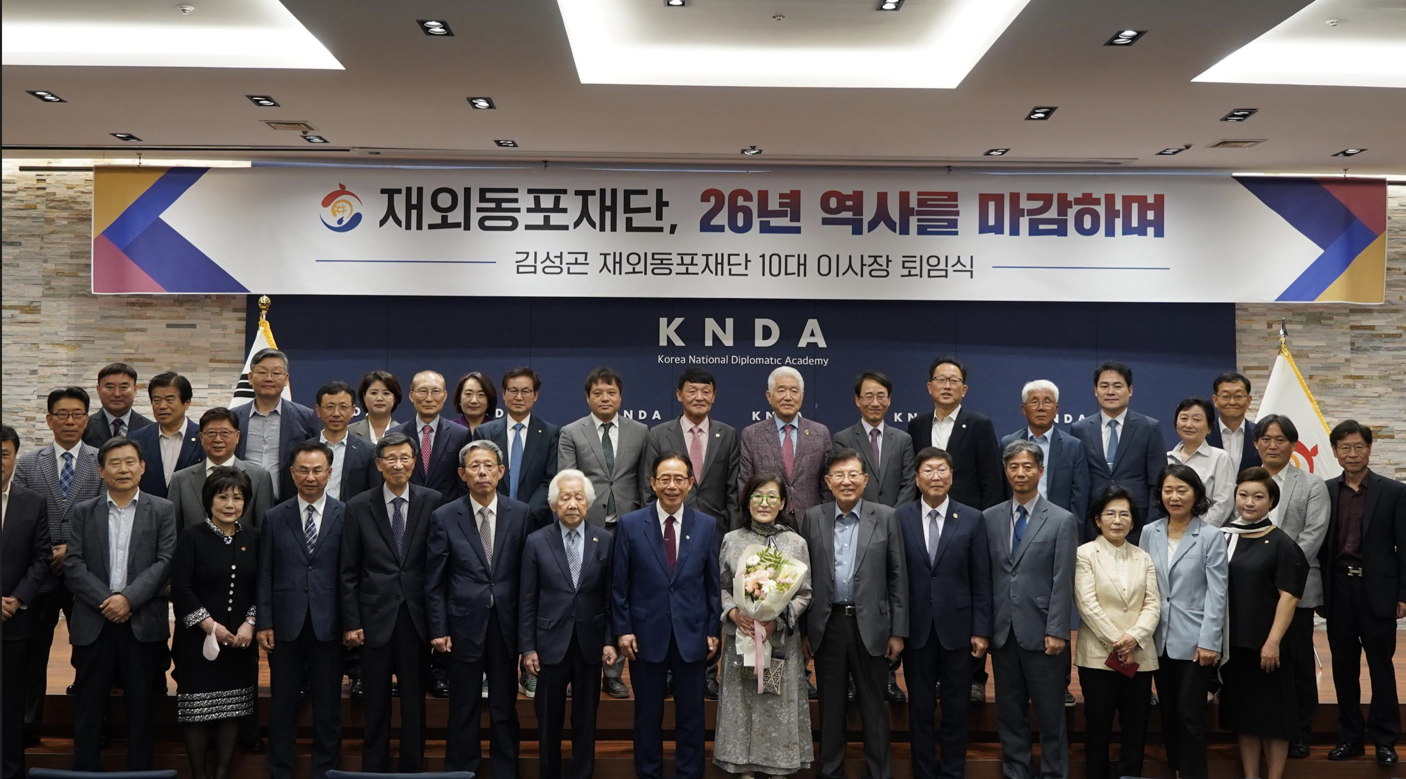 재외동포재단의 제10대 이사장인 김성곤 이사장은 퇴임사에서 “재외동포청 설립을 결정한 윤석열 대통령, 관계부처, 그리고 국회에 감사드린다” 라고 하면서 “앞으로 출범할 재외동포청의 최우선 사업으로 한글학교 활성화와 재외동포 청소년연수 확대, 세계한상대회의 세계화를 다뤄줄 것을 부탁드린다. 더불어 향후 재외동포정책은 세계시민으로서 인류의 번영과 세계 평화에 기여하는 글로벌 코리안을 양성한다는 원대한 비전 속에 만들어져야 하며, 재외동포청과 재외동포협력센터가 위대한한민족의 시대를 여는 초석이 되어주기 바란다”고 전했다.