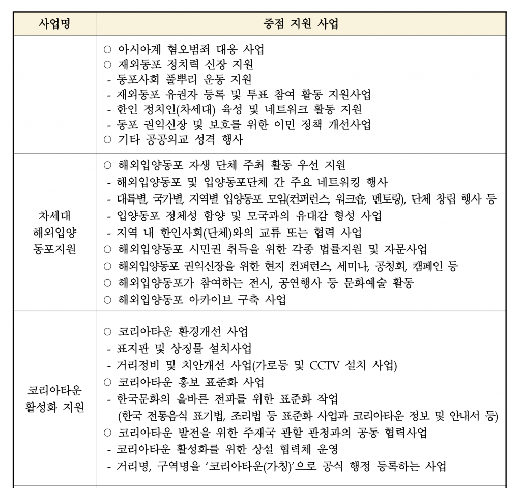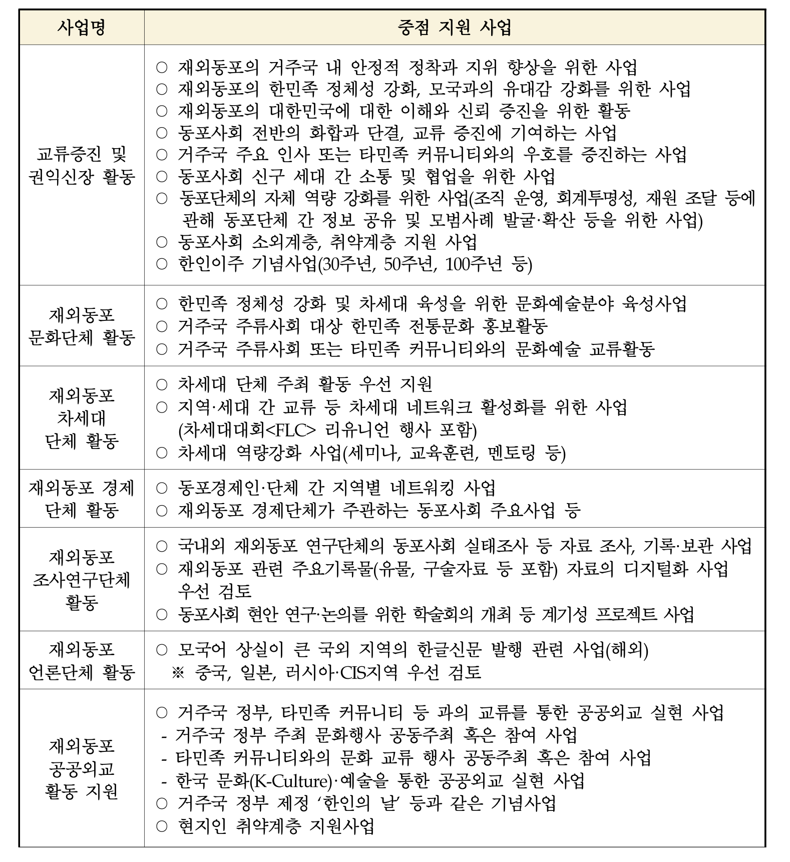 중점지원사업 ‘자세히 펼쳐보기’ /자료제공 재외동포청