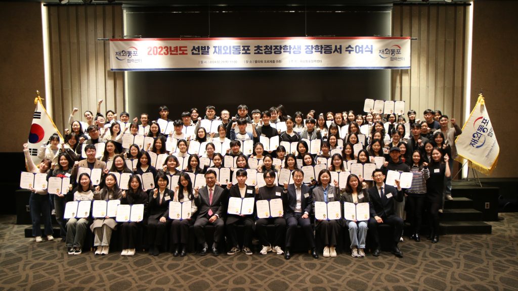 이날 장학증서를 받은 장학생은 23개국 100명(학사 35명, 석박사 65명)으로 국내 대학(원)에 재학 중이거나 2024년 1학기에 입학하는 재외동포 학생들이다.