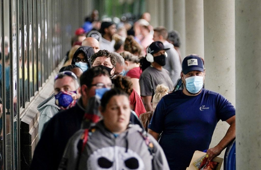 사진 NBC / 실업수당을 신청하기 위해 모인 사람들