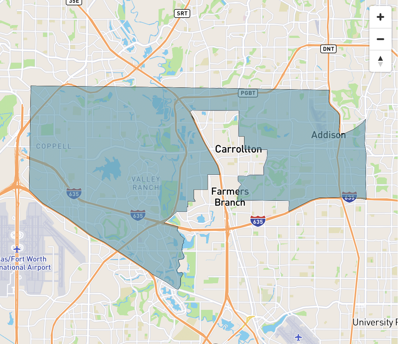 코펠은 전체 4만 1,961명의 인구 중 4분의 1에 해당하는 1만 2,032명이 아시안이다. 캐롤튼은 전체 중 22%가 115선거구로 아시안 인구는 4,080명, 파머스 브랜치는 전체 1만 5,548명 가운데 1,108명이 아시안이다.
