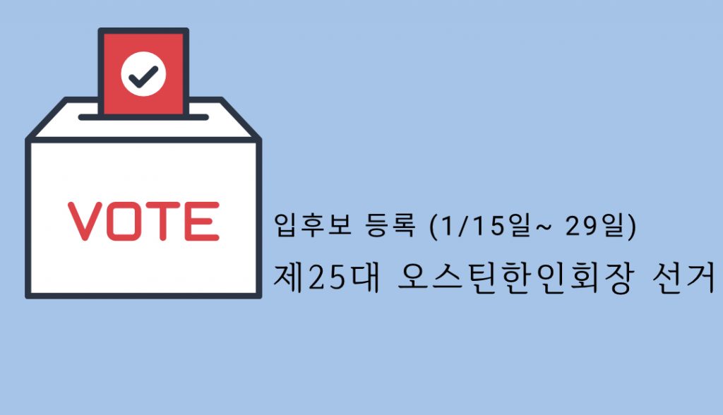 제25대 오스틴 한인회 선거관리위원회(위원장 박용락, 이하 선관위)에 따르면 한인회장 입후보 등록은 15일부터 29일 오후 3시까지다.