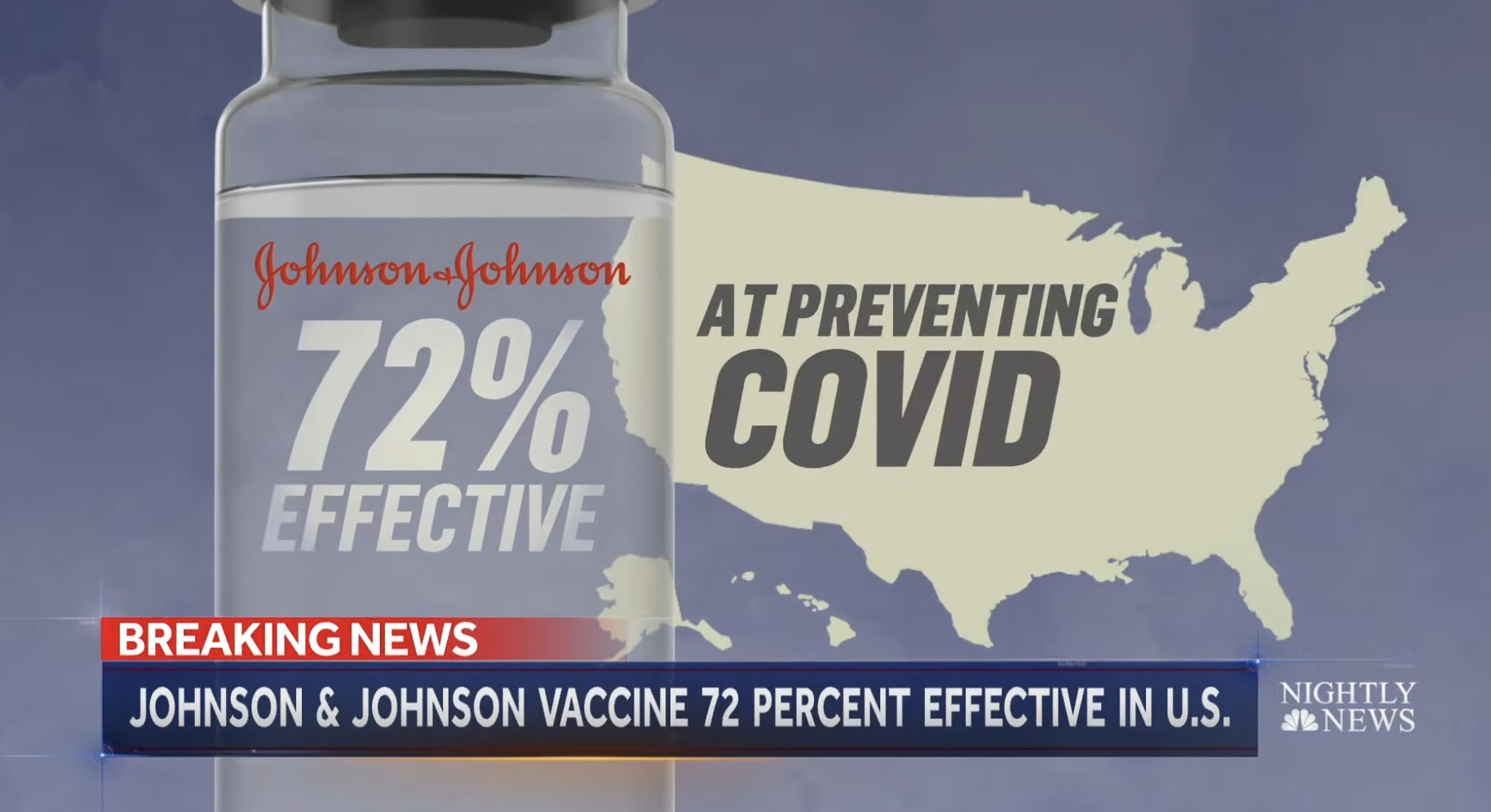 존슨 앤 존슨의 코로나19 백신이 미국에서 72%의 예방효과가 있다는 임상3상 결과가 나왔다. 이는 독감백신의 예방효과가 45% 에서 60% 사이인 점과 비교했을 때도 의미있는 예방 효과수치라고 존슨 앤 존슨은 밝혔다.