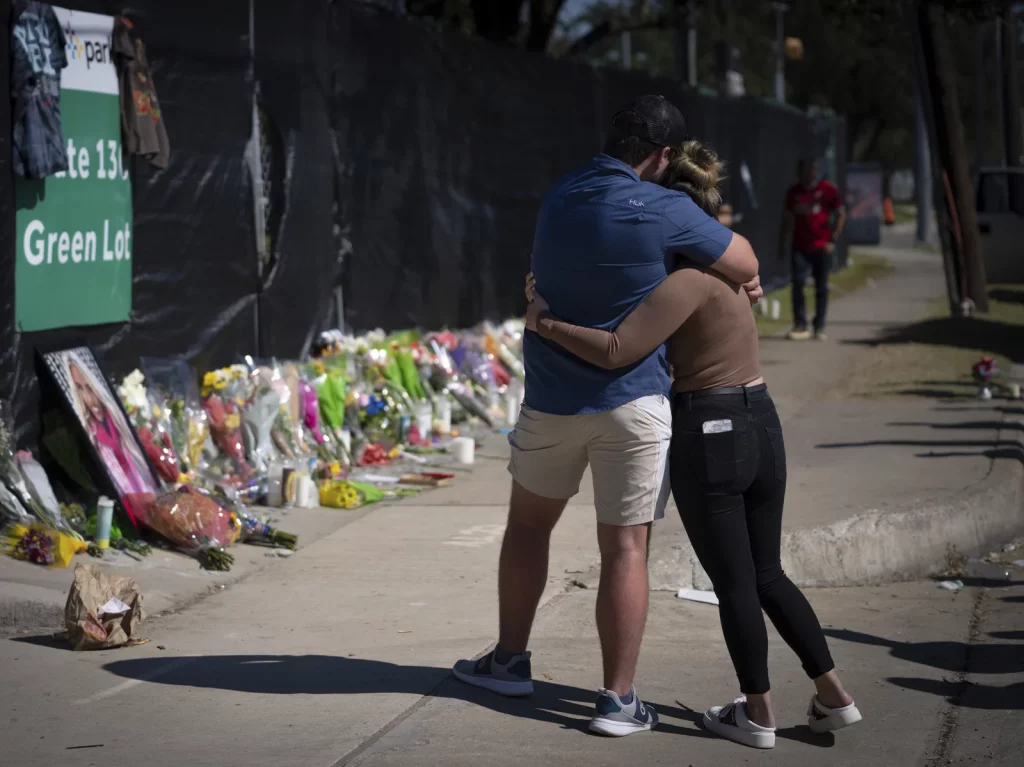 사진/NPR (Two people who knew someone killed during the deadly Travis Scott concert at Houston Astroworld embrace at a memorial on Sunday. Robert Bumsted/AP)