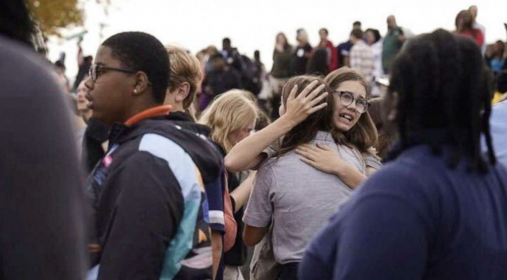 사진/ abc news(People gather outside after a shooting at Central Visual and Performing Arts high school in St. Louis, on Oct. 24, 2022. Jordan Opp/St. Louis Post-Dispatch via AP)