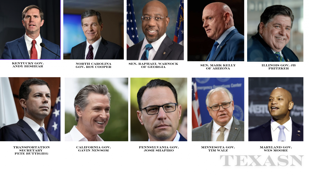 민주당에서 가장 인기있는 주지사를 꼽으라면 캘리포니아의 개빈 뉴섬 주지사다. 카멜라 해리스 부통령과는 오랜 정치인연을 맺고 있다. 오랜 시간 이들은 동맹이자 경쟁자면서도 해리스 부통령보다 더욱 진보적인 성향을 갖고 있다. 뉴섬 주지사는 해리스가 샌프란시스코 지방검사로 재직할 때 샌프란시스코 시장이었다. 2010년 해리스가 법무장관, 뉴섬이 부지사로 선출되면서 캘리포니아 선거에 동시에 당선되기도 했다.