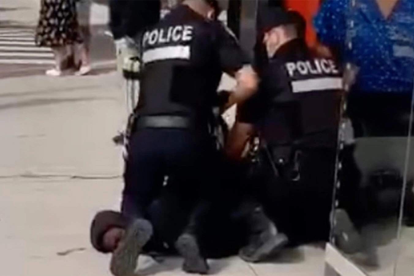 뉴욕타임즈가 공개한 영상(몬트리올 경찰이 10대 소년의 목을 무릎으로 짓누르고 있다)