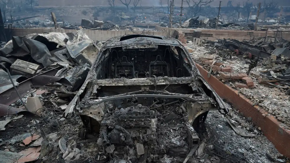 사진/ AP (Ruins are left behind after the Palisades Fire ravaged a neighborhood amid high winds in the Pacific Palisades neighborhood of Los Angeles, Wednesday, Jan. 8, 2025. (AP Photo/Damian Dovarganes))
