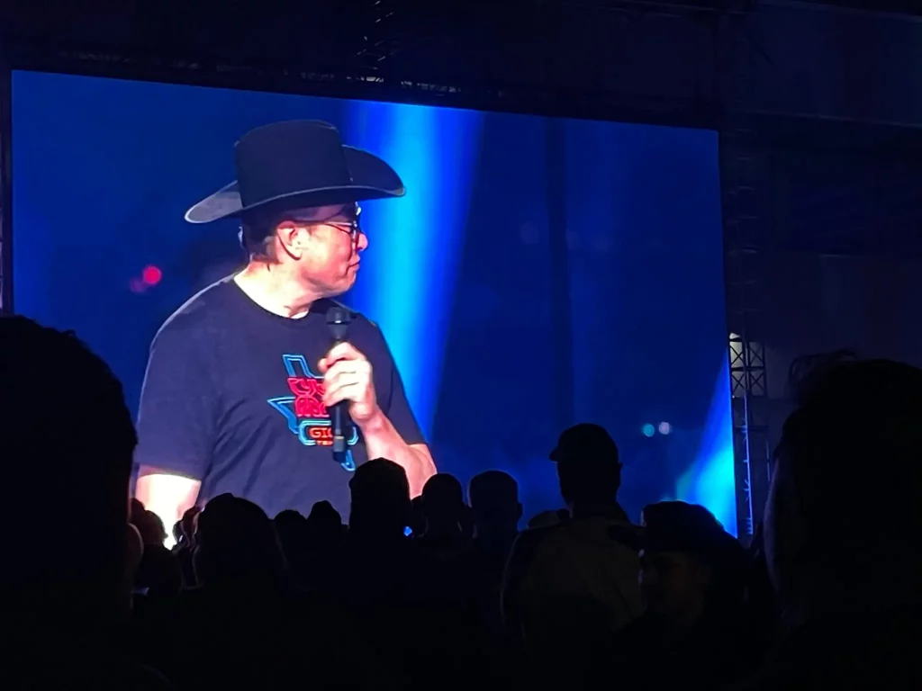 사진 /KXAN(lon Musk on the stage at the Tesla ‘Cyber Rodeo,’ on Thursday (Viewer photo))
