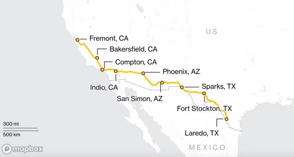 테슬라의 이번 충전소 설치 계획은 캘리포니아(프레몬트)와 텍사스(라레도), 멕시코로 이어지는 테슬라 공장간의 운송을 지원하는 것으로 예측된다.