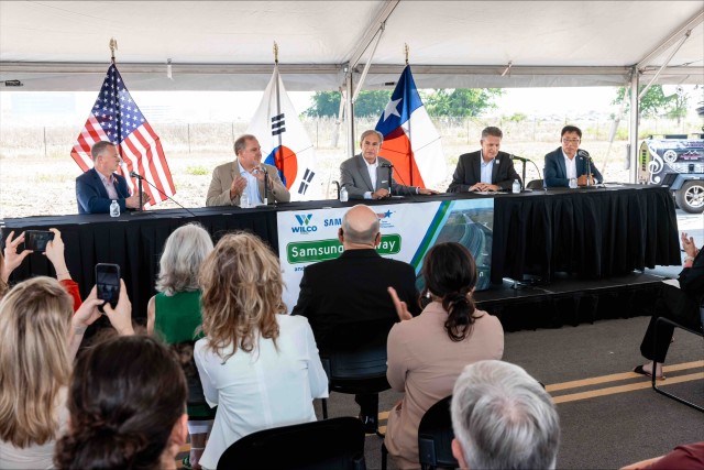 테일러 삼성 반도체 제2공장 건설이 한창인 가운데 공장 인근에 삼성 하이웨이(Samsung Highway)가 개통됐다. 지난 7일(금) 삼성 하이웨이 개통식에는 그레그 에봇 주지사를 비롯해 삼성 테일러 프로젝트의 부사장이자 박찬훈 사장, 윌리엄슨 카운티 판사 빌 그래벨(Bill Gravell), 텍사스 교통부 지역 엔지니어 터커 퍼거슨(Tucker Ferguson), 윌리엄슨 카운티 프리싱크트 4의 러스 볼스(Russ Boles) 의원이 참석했다.