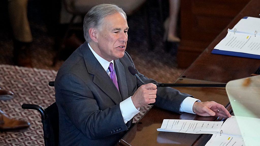 사진/ AP (Texas Gov. Greg Abbott addresses the House Chamber at the Texas Capitol during the first day of the 88th Texas Legislative Session in Austin, Texas, Tuesday, Jan. 10, 2023. (AP Photo/Eric Gay)