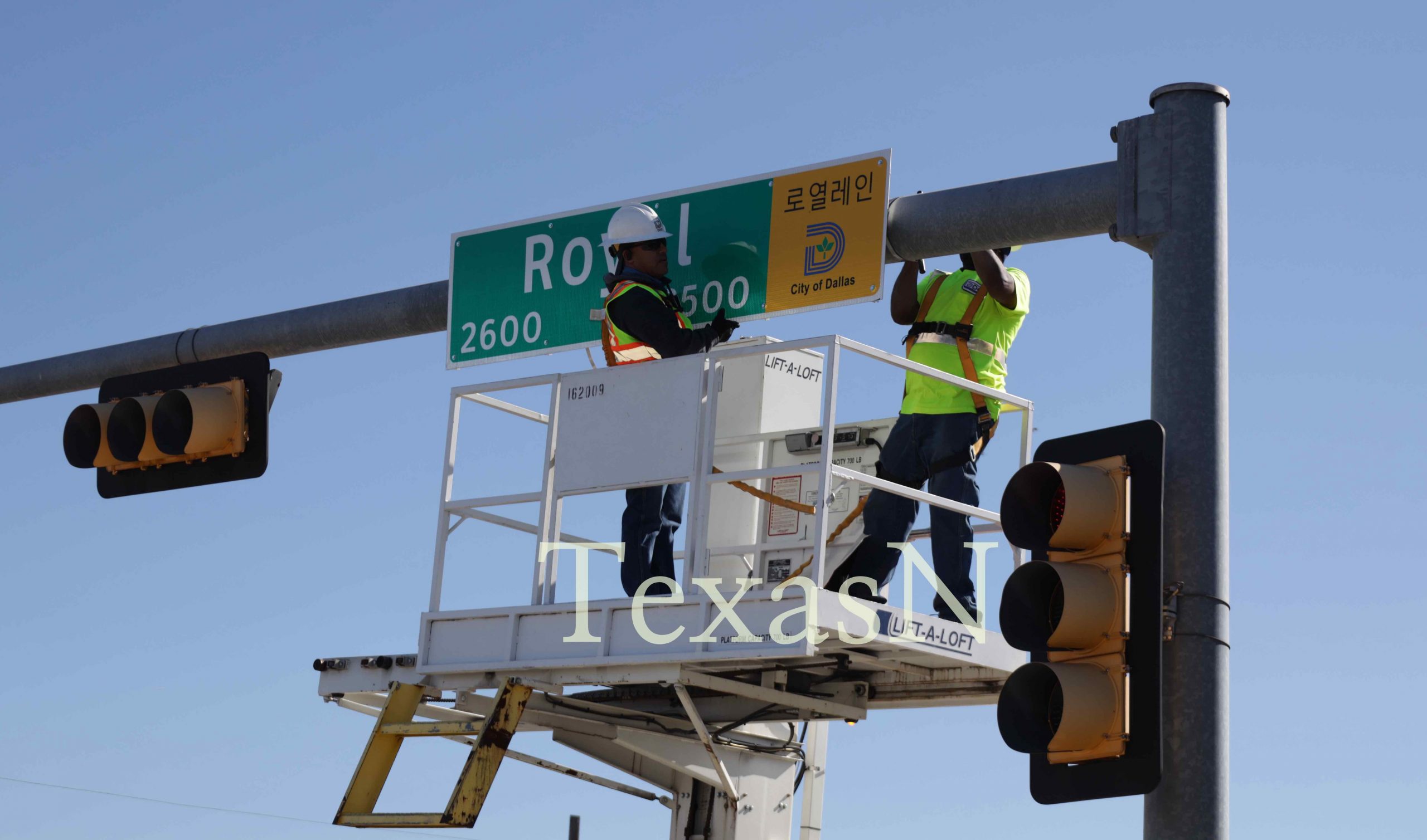 [사진=텍사스N] 달라스 해리하인즈와 로얄레인이 만나는 지점부터 루나레인에 이르는 직선도로 약 2.5마일 구간이 코리아타운으로 공식지정되면서 지난해 1월에는 미 남부 최초로 한국어와 영어가 병기된 도로 표지판이 세워졌다.