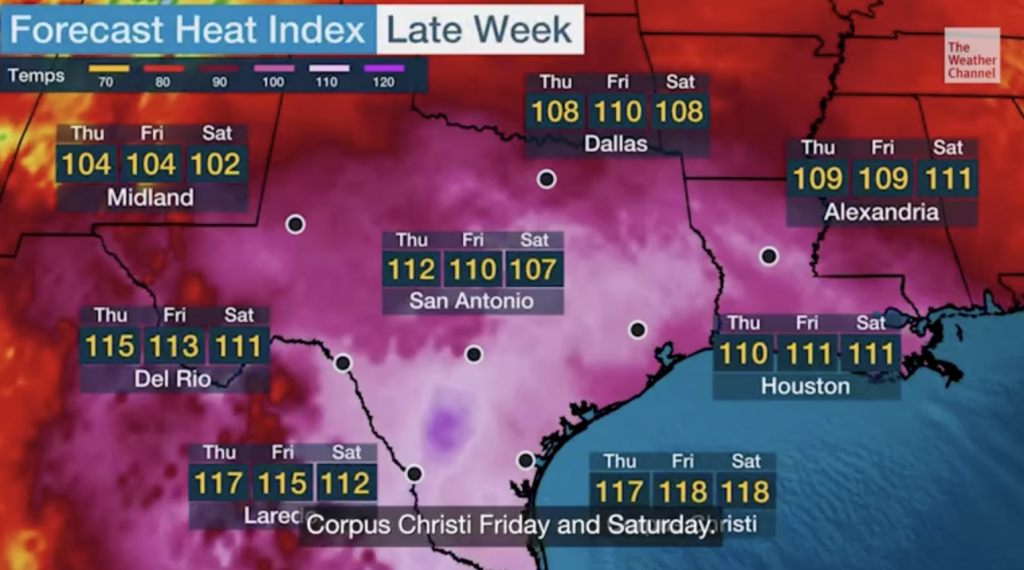 텍사스, 15일(목)부터 한주간 극한 폭염 … 최고 109도