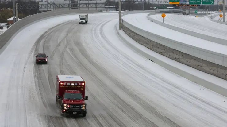 사진/ CNBC (An EMS vehicle drives down an icy highway as cold weather moves through Dallas, Texas, U.S., January 31, 2023. REUTERS/Shelby Tauber)
