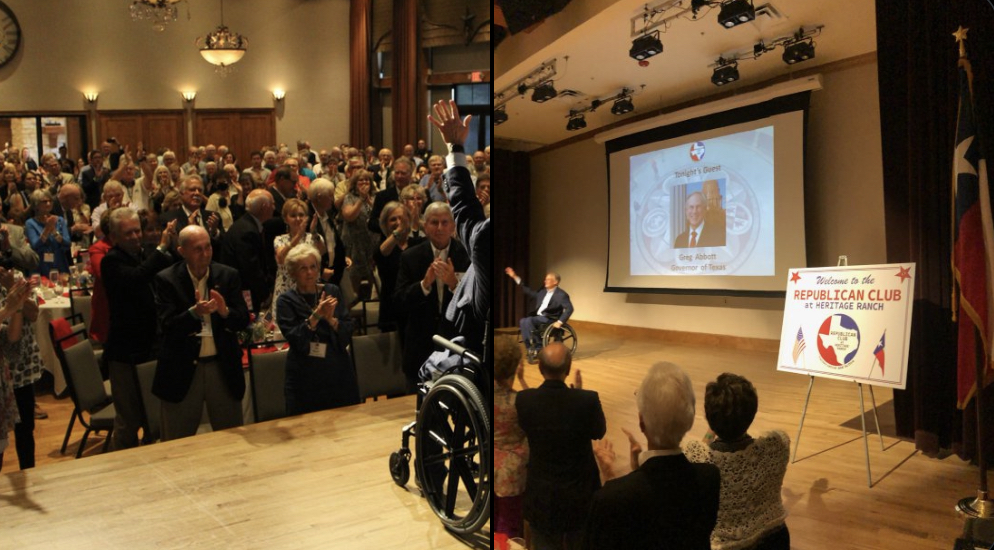 사진/ 콜린 카운티 공화당 행사장에 모인 공화당 인사들 앞에서 에보트 주지사가 연설하는 모습을 트위터에 공개한 뒤 코로나19 양성판정을 받았다.