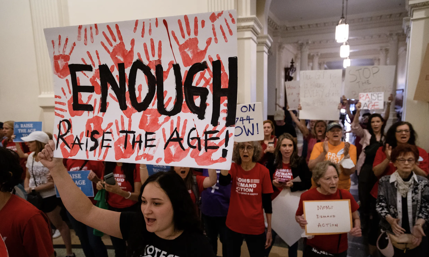 사진 / 텍사스 트리뷴(Dozens of people hold signs and chant at a May 8 rally in the rotunda of the state Capitol to call for a vote on House Bill 2744, which seeks to raise the age requirement to purchase semi-automatic rifles from 18 to 21)