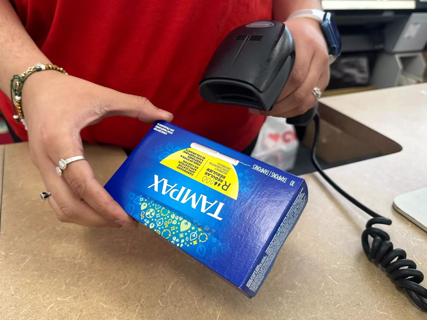 사진/ NPR (CVS sales clerk scans a box of Tampax tampons in East Dallas.)
