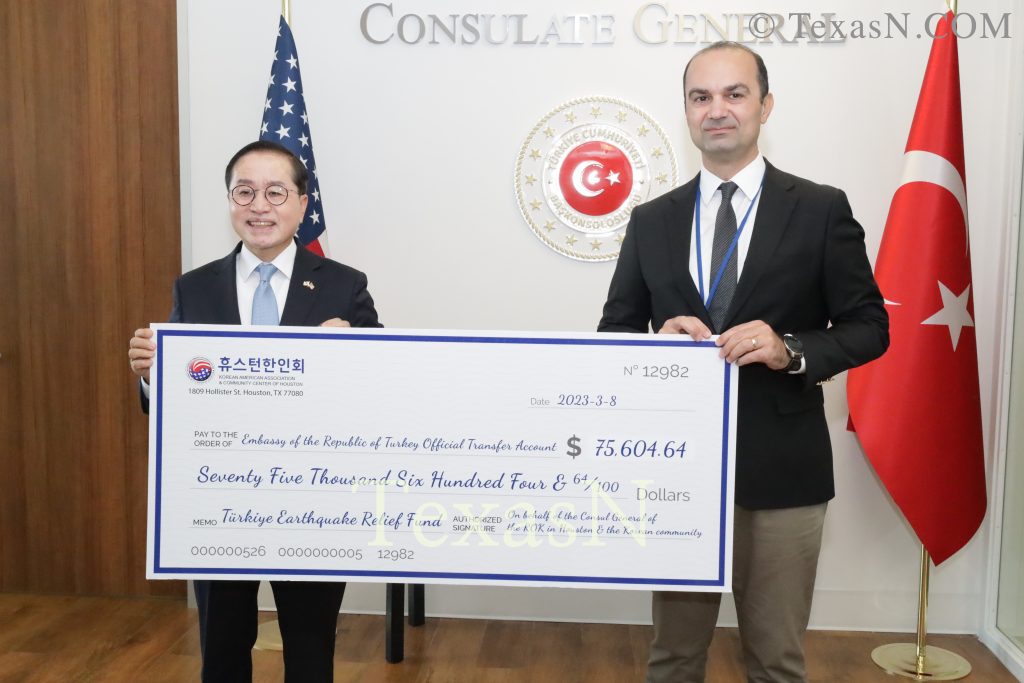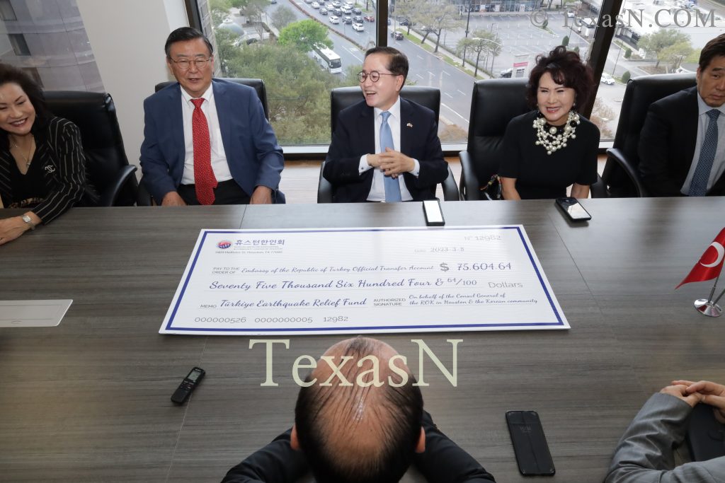 휴스턴 뿐만 아니라 엘파소, 샌안토니오, 알칸사주에 이르기까지 주휴스턴총영사관 관할 지역 한인사회는 이번 지진피해 모금에 힘을 보태면서 역대 최대 규모의 성금이 모아졌다. 단 2주만에 7만 5,604달러가 모아지면서 튀르키예 총영사관도 놀라움을 금치 못했다.