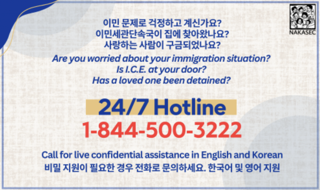 한편, 미교협은 이민세관단속 및 이민, 구금과 관련해 핫라인을 구축 운영하고 있다.