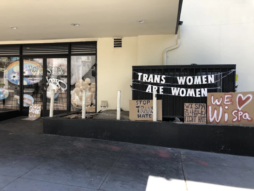 코리아타운내 스파업소 내부에서 찍은 트위터 영상을 보면 ‘남성’이지만 자신의 성적정체성을 여성이라고 한 ‘남성’ 고객의 여탕출입을 허용하자 당시 여탕에 있던 손님들이 강력하게 항의한다. 여성은 “그는 여성이 아닌 남성”이라며 “여자 아이들 앞에서 자신의 성기를 노출하는 등 아이들에게 큰 충격을 줬다”고 주장했다.
